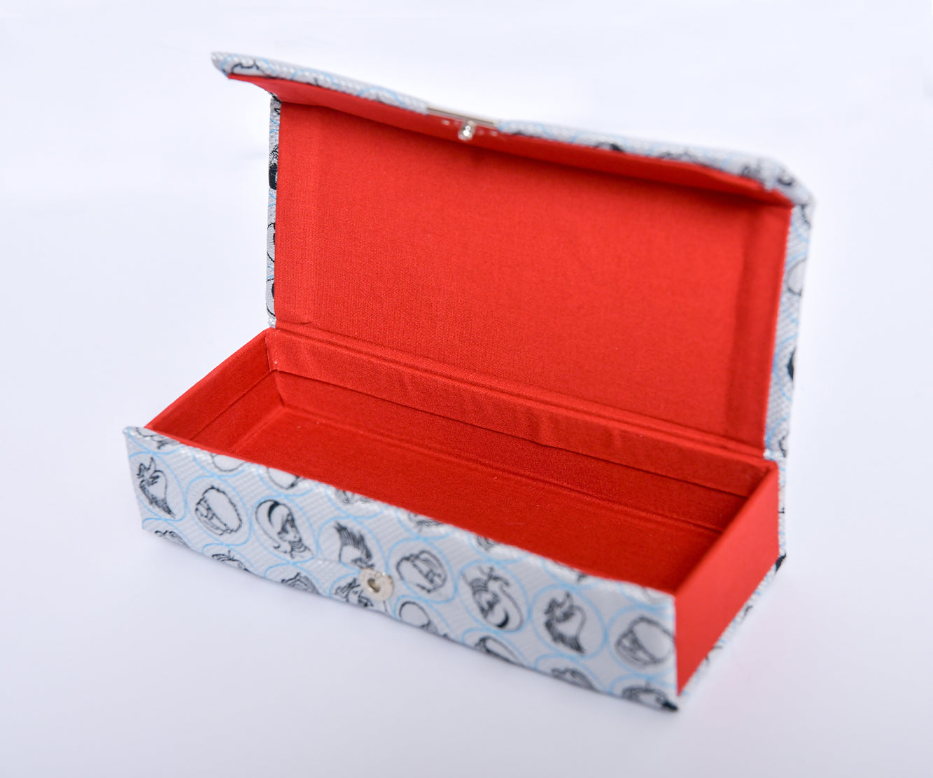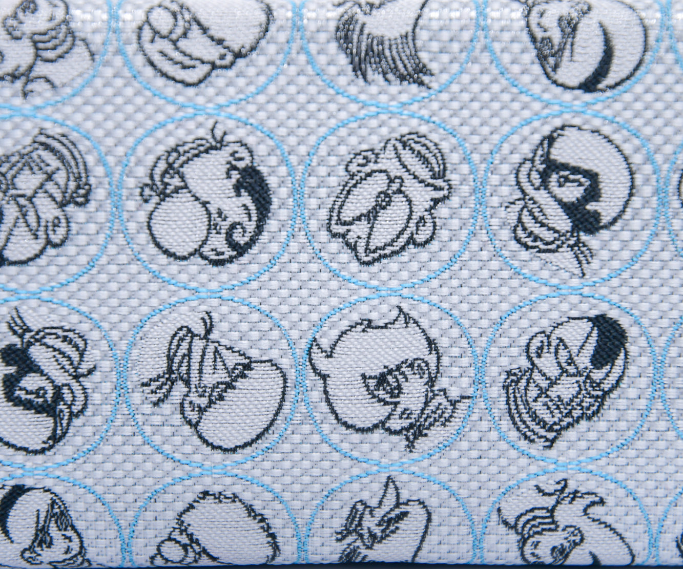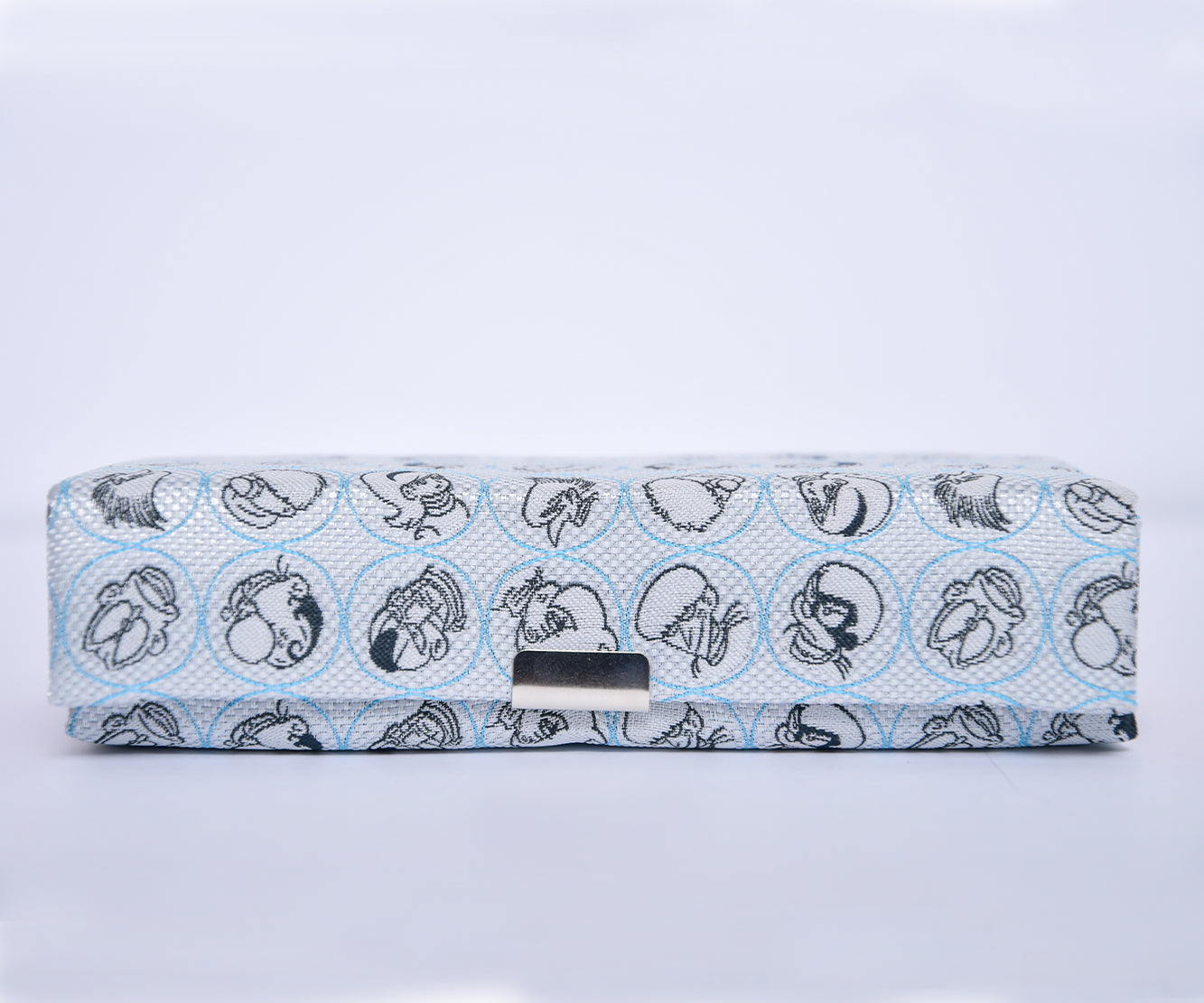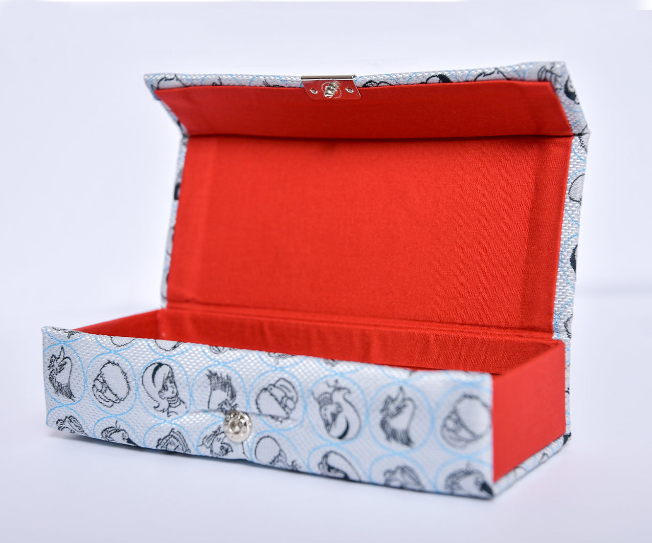 キャラクターのデザインをネクタイ織機を使用したジャカード生地で表現し、眼鏡ケースに仕上げています。
