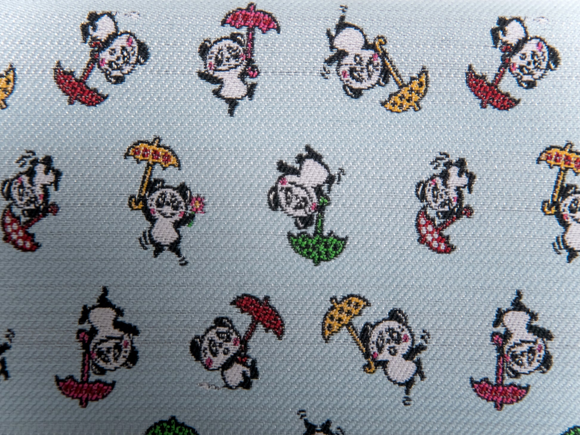 キャラクターのデザインをネクタイ織機を使用したジャカード生地で表現し、ペンケースに仕上げています。