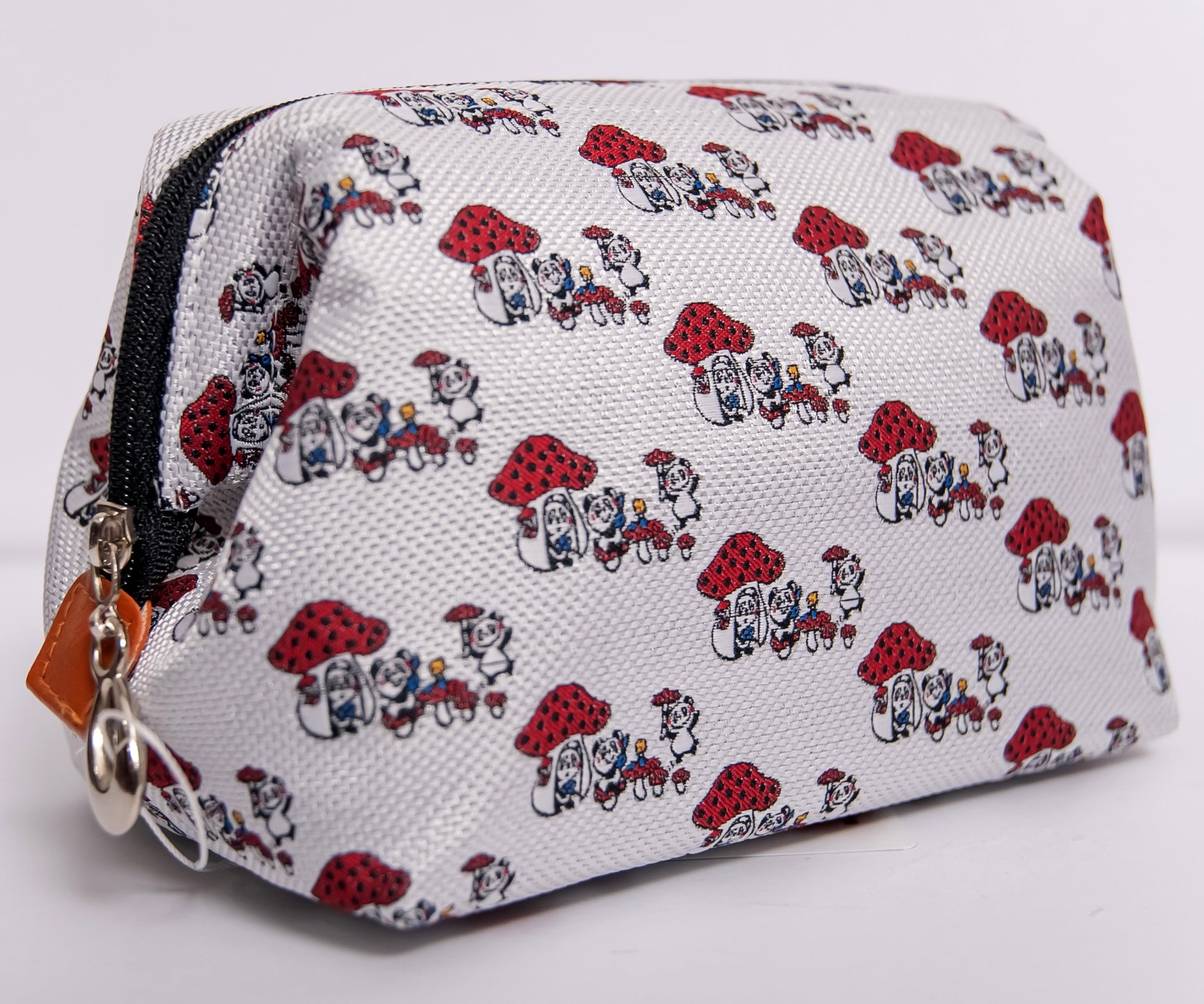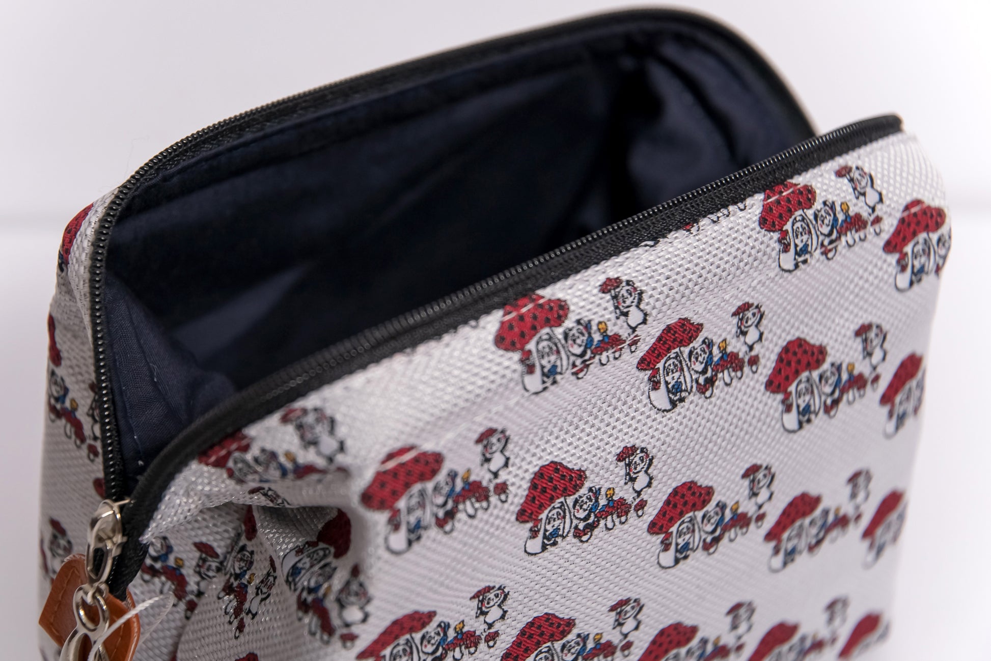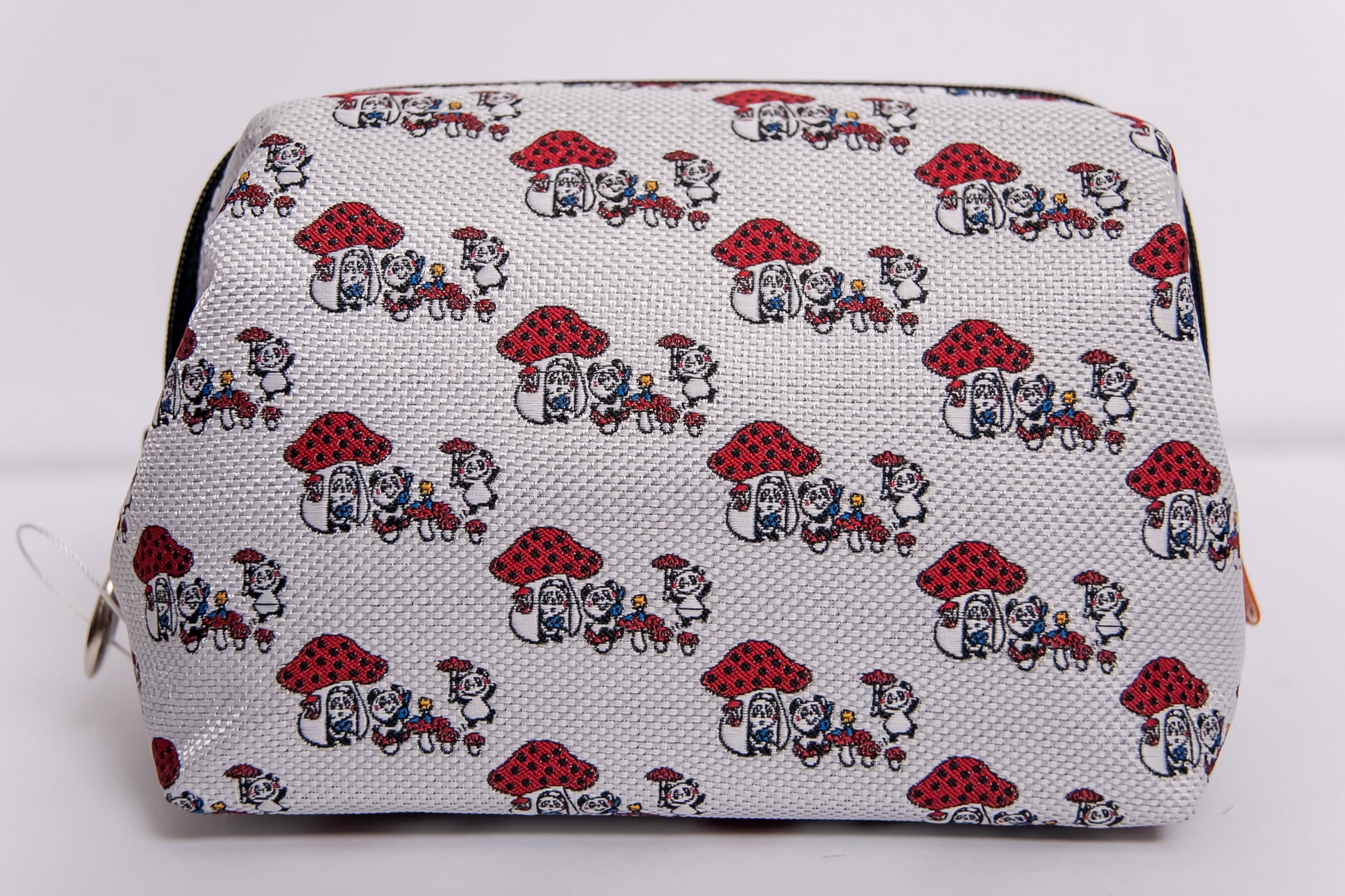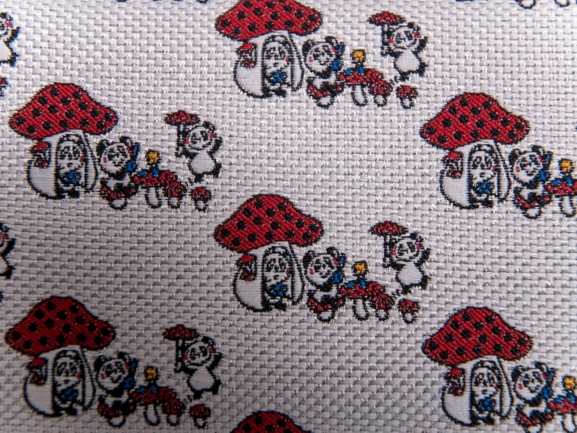 キャラクターのデザインをネクタイ織機を使用したジャカード生地で表現し、ペンケースに仕上げています。