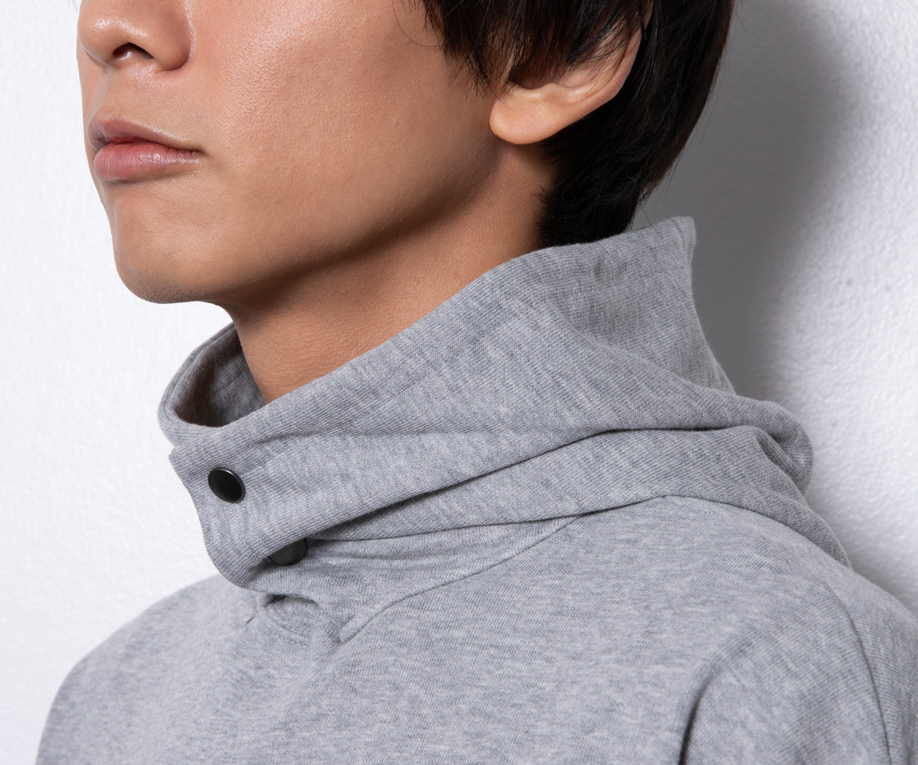 パーカーはフロント首元にスナップボタンが付いているので、2wayでスタイリングをお楽しみいただけます!